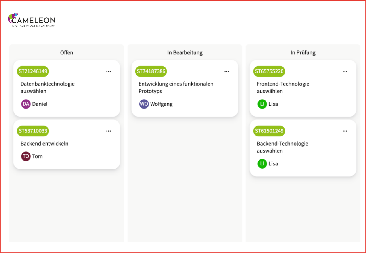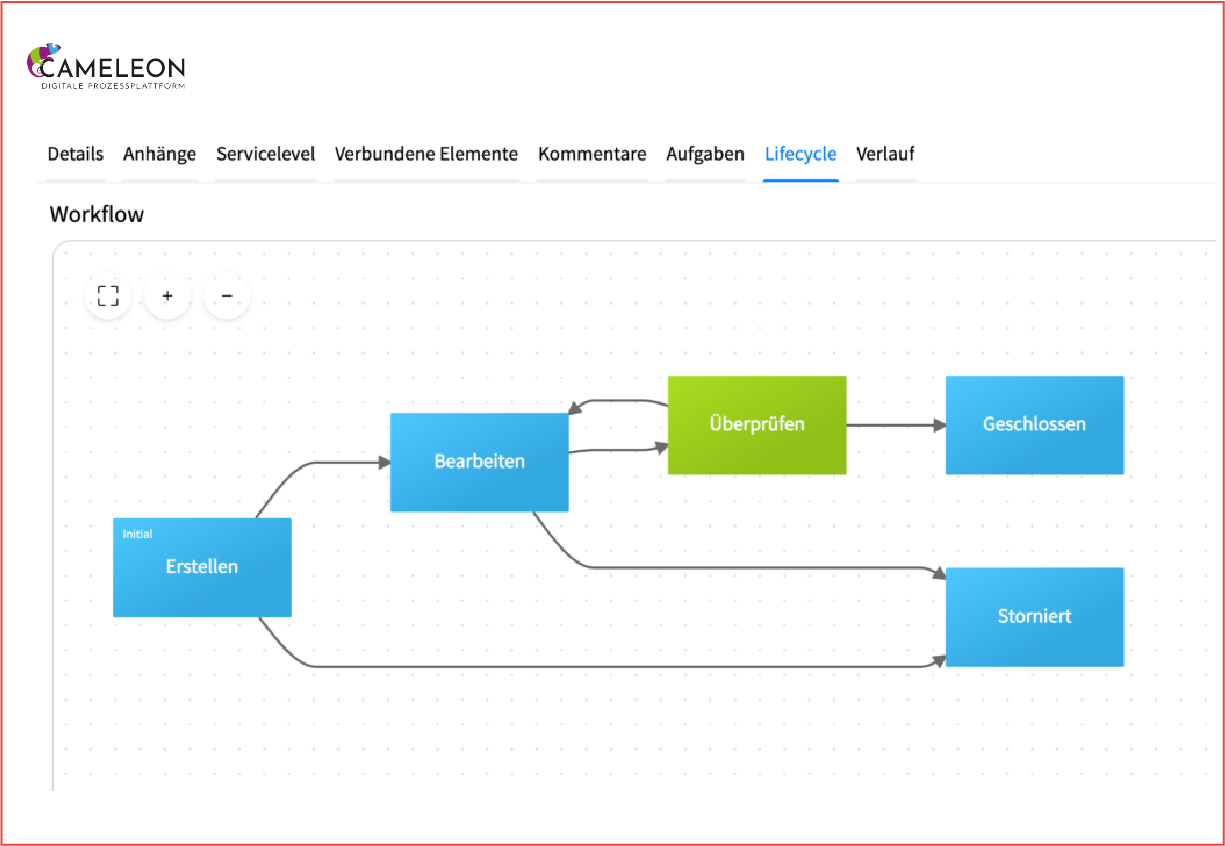 Das Herzstück von Cameleon ist die leistungsstarke Workflow Engine. Alle Module basieren auf dieser flexiblen Prozessmodellierung, die über ein umfangreiches Low-Code-Regelwerk konfiguriert wird. Dadurch lassen sich Abläufe individuell gestalten und andere Werkzeuge oder Systeme über die Integrationsengine direkt anbinden. Dank der gekapselten Code-on-Demand-Technologie können selbst komplexe Prozesse einfach modelliert und nahtlos in bestehende Umgebungen integriert werden.