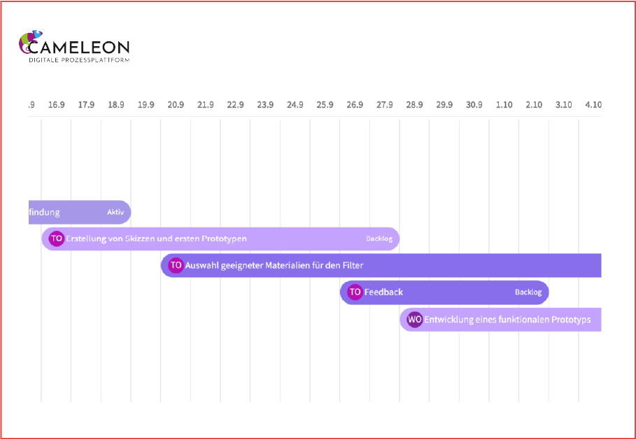 PMA ist das Modul für agiles Projektmanagement sowie Planung, Verwaltung und Tracking Ihrer Projekte. Es ist vollständig in die CAMELEON-Lösungsbausteine integriert und ermöglicht einen nahtlosen Übergang von der Projektphase in den laufenden Betrieb. Mit Funktionen wie Drag & Drop, Kanban Boards, Zeitachsen und Kalendern behalten Sie jederzeit den Überblick und realisieren Projekte effizient und transparent.